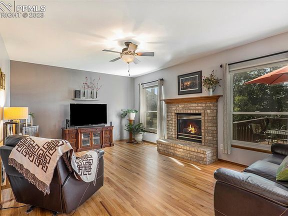 Gorgeous D20 Schools Summerfield Stucco home with walkout basement on a generous lot with mature trees and beautiful landscaping. You will love the gorgeous attention to detail in the landscaping which includes sprinklers front and back and rubber mulch. The kitchen is open and flows into the family room with fireplace for the cozy Colorado winters, and opens to the 2019 upgraded composite deck with mature trees and amazing views of the front range! The kitchen also boasts antimicrobial Corian countertops, a large corner pantry, brand new dishwasher and oven, and contemporary light fixtures. Upstairs the oversized Master Suite includes wood floors, walk in closet, and attached updated bath and the most amazing mountain views from your shower! 3 additional bedrooms, 2 with wood floors, and full bath with dual vanity complete the upper level. The basement include a massive garden level recreation room with plenty of light and walkout to the back yard, a 5th bedroom, and a contemporary full bath with beautiful tile in the shower. Brand new garage door, class 4 roof shingles 2015, furnace 2014, vinyl windows 2011. Air Conditioning and Smart Thermostat included! Perfectly situated within walking distance to IB schools, including Academy Intl Elementary with French language immersion. Nearby volleyball court & parks, including John Venezia Park with splashpad, tennis courts & MORE! Minutes to Children’s Hospital, Air Force Academy, I-25, Shops at the Promenade, Library 21C, Focus on the Family, Restaurants, Shopping & MORE! See this stunning home TODAY!