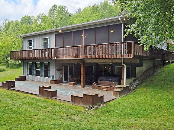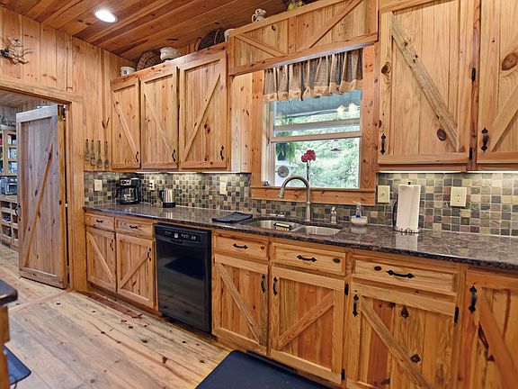 MUST SEE THE INSIDE OF THIS BEAUTIFUL, SPACIOUS RUSTIC HOME WITH A GUEST HOUSE. This home has just about all that you could ask for or want in a property in the mountains. Nice year round creek, level, useable 5.51 acres, garden spot, large outdoor shed, watering system for flowers and garden, generator, hot tub, THE WORKS. Main house has two bedrooms on main floor (one is used for office at this time), master suite, large laundry room, wet bar, kitchen, living area which includes a screened porch, and dining area. Lower level has bedroom, bath, workshop, storage, kitchenette, craft/sewing space, large bonus room. Guest house has two rooms which are being used as bedrooms, great room, kitchen, and bath. Some features are a generator, central vac, tankless water heater, storage, 2 car garage, and so much more. HAVE TO SEE THE INSIDE TO APPRECIATE.
