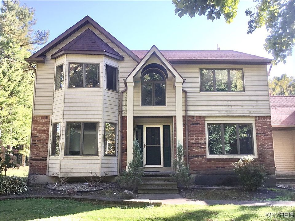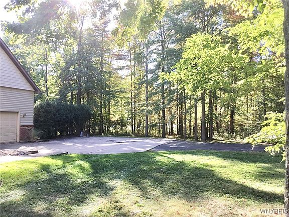 If you are looking for some peace and quiet, look no further. This four-bedroom, two-and-a-half bath is nestled on 1.68 acres in the Town of Eden and is surrounded by mature trees. The family room has hardwood floors, a vaulted ceiling, a skylight, and a beautiful stone fireplace with a stunning mantel. There is a first-floor bedroom that could be used as an office, playroom, work-out room, or any other need you may have. The kitchen has an abundance of oak cabinets, including a built-in desk, seamless sink, Corian countertop, center island with a prep sink, dishwasher, built-in double ovens, and a large area surrounding the cooktop to prepare all your gourmet meals. There is a half bath, a large living room, and a dining room all on the first floor. Two generously sized bedrooms and a large full bath boast the second floor. You will also find a large primary bedroom. It has two closets, one of which is a large walk-in, and an oversized full bath with double sinks. Each room has six-panel doors and plenty of sunshine. There is attic space and a full basement for all your storage needs. Experience your beautiful private backyard and three-tier deck from the sliding glass doors off the family room or dining room. You will be greeted by several sitting areas and a built-in fire pit. What a perfect place to enjoy outdoor entertaining or relaxing with nature. The backyard backs up to woods, and there is a nice-sized shed for additional outdoor storage.