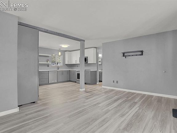 Welcome home to this move-in ready, updated and centrally located ranch in the Kitty Hawk community featuring 4 bedrooms (one non-conforming), 3 baths (1/2 bath downstairs plumbed to add shower or tub). The open floor plan with its wonderfully updated kitchen and great room with beautiful luxury vinyl hardwood flooring that extends through the hallway will be the hub of your home. White and grey kitchen cabinets, stainless steel appliances, all stay with the home, pantry, double sink, display shelves, solid surface countertops and walkout to the backyard from the kitchen. Refinished hardwood flooring throughout the remaining rooms on the main level including the primary bedroom with attached updated ½ bath and two secondary bedrooms. The main level bathroom has also been updated. Downstairs you will find a large family room, non-confirming 4th bedroom (office/craft room), 1/2 bath (plumbing in place for shower or tub) and large laundry room with great storage. The backyard to includes a covered patio, raised planter beds and plenty of space for entertaining and the opportunity to create the backyard of your dreams. Located near trails, schools, retail and easy access to I-25, this location is ideal and is central to anywhere in Colorado Springs.