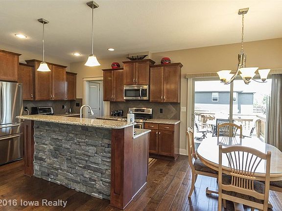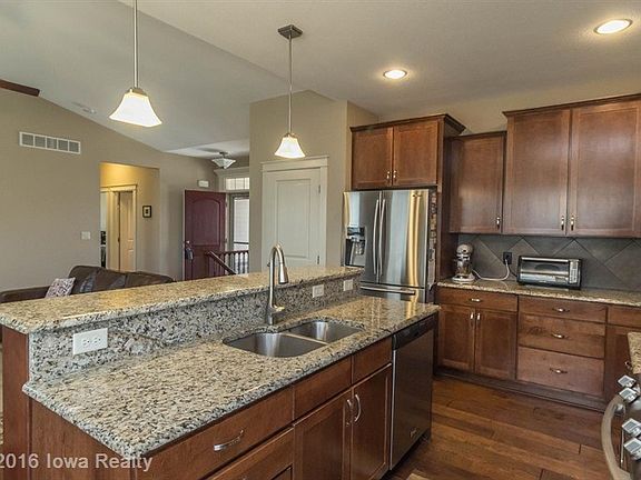 Upscale 4 bedroom ranch with finished walkout lower level! Main floor features large mudroom/laundry room off garage with built-in bench/locker. Beautiful birch hardwood runs throughout front entry, vaulted family room with gas fireplace, dining area & open kitchen. Kitchen has maple cabinets with pull-outs, 2 pantries, granite, backsplash, SS appliances with gas stove and double ovens that vents to the outside! Master suite, 3/4 bath w/double sink, granite & walk-in closet. Spacious 2nd bedroom & full hall bath. Finished walkout lower level features another family room. 2 additional BRs and another full bath. Large storage room too! Professionally landscaped. Close to 3 area parks, walking/bike trails, & Waukee schools, Schuler Elementary.