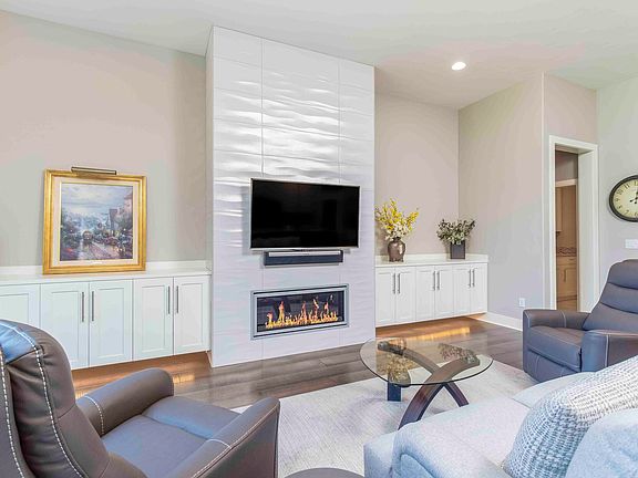 This Pahlisch built gem offers a peaceful setting and low maintenance living. Nestled conveniently close to shopping and the trail system, you'll have everything at your fingertips. The single level Carrera floor plan, designed to be open & versatile. The primary bedroom is thoughtfully located in the back of the home, providing privacy & tranquility & views. Two add'l bedrooms are situated at the front. The great room features a gas fireplace & plenty of built-in's. This space flows into the gourmet kitchen & dining area, featuring a large center island w/ a breakfast bar & dry bar area. Indulge in the serenity of nature from your west-facing deck, overlooking the golf course & a charming water feature. This beautiful setting sets the stage for outdoor entertaining at its finest. Luxurious features abound in this home, including stone countertops & tile showers. Every detail has been carefully considered to create an inviting & elegant living space.
