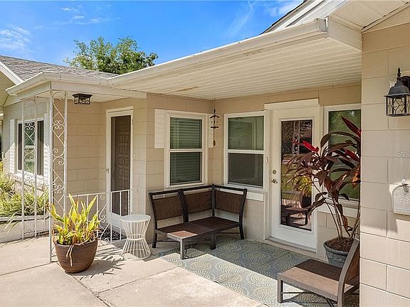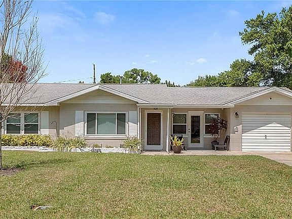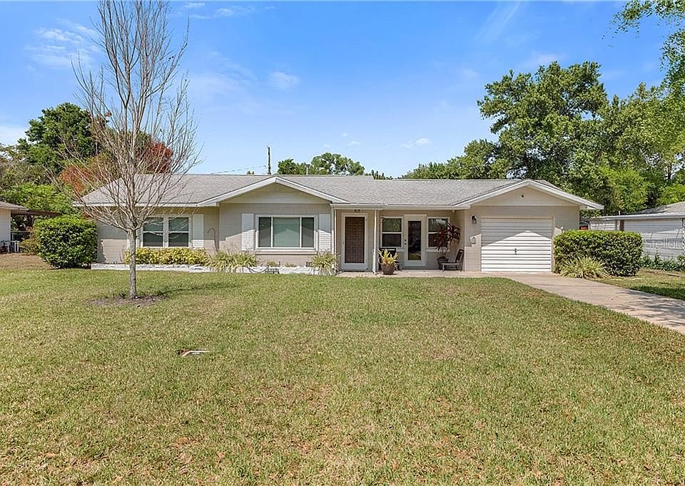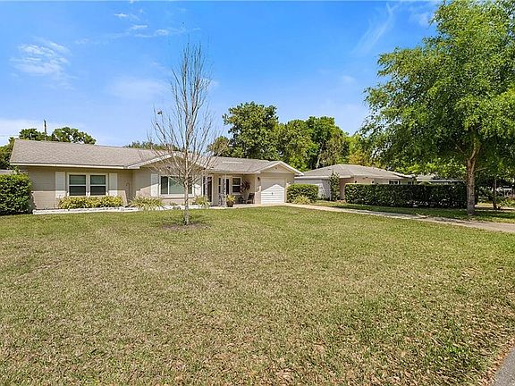 Charmingly preserved Mid-Century Modern home in historic Mt. Dora. Has beautiful terrazzo floors throughout the main part of the house, and the historic plaster ceiling details. The home has been very well preserved and maintained keeping the style and charm of the past. Enter through the secondary entryway that transitions to a large dining area. The Kitchen and the Living Room can be entered from entryway. Notice the beautiful Terrazzo floor and the details of the Mid-Century style. The kitchen has beautiful wood cabinets and the décor theme continues through. Move on to the two bedrooms and bath with the same Terrazzo floors, continued Mid-Century styling. Energy saving windows were installed in the main part of the house. The Laundry room is behind the door that leads to the spacious one car garage. The back leads to a large paver patio and a very large back yard as the lot is a full .31 acres.