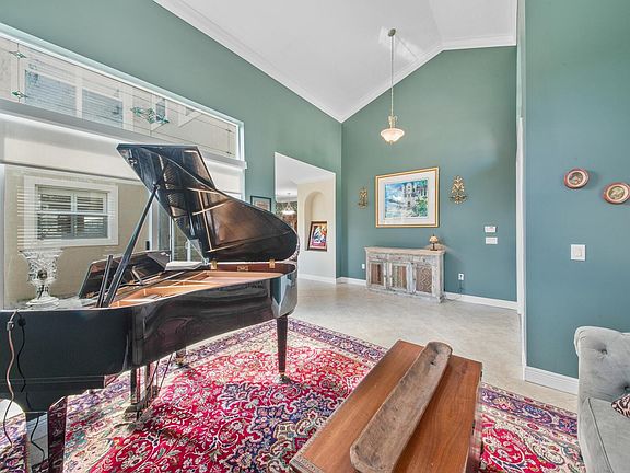 A BRAND-NEW ROOF enhances the luxury and peace of mind in this stunning 5-bedroom, 4-bath home in Olympia. Featuring impact windows, this residence offers both beauty and security. A grand double-door entrance leads you into a spacious foyer, setting the tone for the refined design throughout. The formal living room showcases soaring vaulted ceilings, an arched window, and a sliding door that opens to the patio, flooding the space with natural light. An additional formal living area with high-hat lighting and another slider to the patio creates the perfect space for entertaining. The expansive family room, also with patio access, seamlessly flows into the open-concept kitchen, complete with quartz countertops, a center island with a snack bar, and a cozy breakfast nook. The first floor is adorned with neutral tile laid on the diagonal and includes two spacious bedrooms and a cabana bath. Upstairs, the primary suite is a private retreat with a double-door entrance, a sitting area, and a slider to a private balcony overlooking the lake. The suite also boasts dual walk-in closets, double sinks, a jetted tub, and a walk-in shower.