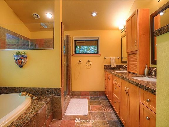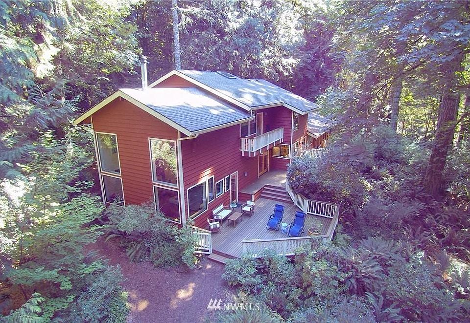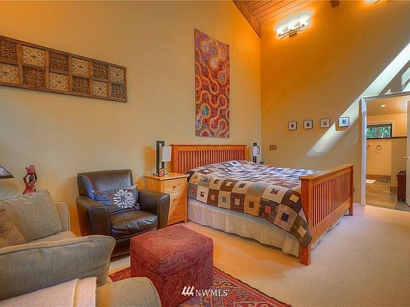 Northwest Contemporary House in beautiful, natural setting. Not a drive by nested in the woods must see ! Open floor plan on a dead end street directly across from Evergreen State College forest land, with 1,000 forested acres of trails and Puget Sound beachfront. The house is right down the street from Evergreen's organic farm. The house is 2800 square feet approximate. Living room, kitchen, dining room, den, utility room, office with built in desk and cabinets, three bedrooms, 2.5 baths, two car garage, utility room. Fireplace in the livingroom. Master suite has balcony, two closets, and spacious private bathroom with large tub and shower. There is a large deck with french doors off the house, and a fenced yard of some size off the deck. Madrone hardwoods and radiant floor heating in most of the lower level, with carpeting upstairs. There is a small ADU on the opposite end of the 1.4 acre property with a separate driveway which is not part of the rental; ADU is occupied by landscaper/gardener who is caretaker for property. House is available within seven days of signing lease. One dog is negotiable with a security deposit. One year lease. Pictures in listing and drone film link below are from 2018 when the house was last listed for sale. Some paint colors have since changed to more neutral tones. House viewing by appointment only. We can arrange video viewings but it may take a little more advance notice. Thanks so much for your interest in the property ! Renter responsible for gas and electric. Owner takes care of water. No smoking. One dog negotiable with security deposit. Last months rent payable upon execution of lease. Yard maintenance taken care of by caretaker in ADU.