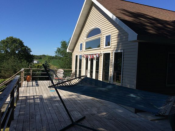 Beautiful 2 bedroom 2 bath home sitting on 5 wooded acres. Home has an open floor planned with vaulted ceilings in the living and dining room. Large deck with sweeping views of the countryside. 2 + car unattached garage. Property also includes a separate 1 bedroom, half bath guest house. This home is country living with the convenience of being close to town.