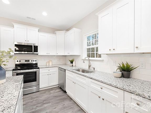 Qualifies for 100% mortgage financing with no PMI & no income limits. Stunning new construction 4 bedroom single family home just minutes away from Uptown Charlotte. Enjoy the convenience of city living with privacy on this three quarter acre lot. Open floorplan featuring 9 foot ceilings on main and luxurious finishes such as granite countertops, white shaker cabinetry with soft close drawers/doors, subway tiled backsplash, and pendant lighting. Turnkey move in ready home perfect for first time buyers and investors. Loaded with upgrades including luxury vinyl plank flooring, stainless steel appliances including fridge, and satin hardware/plumbing fixtures. Primary suite offers walk in closet & bath with shower, tub and dual vanity. Main level also includes a home office. Complete with 2 car garage, covered front porch and rear patio. No HOA or rental restrictions, can be used for short term, mid term or long term rental. Superb connectivity via I-77 to I-85 and I-485.