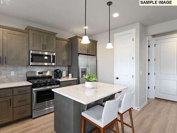 Sales office open daily 11am-6pm! Nestled on a flat lot at the top of the hill in the East Mountain Community. 4 Bed/2.5 Bath plus a 3 car garage and large private backyard. Main floor features 9' ceilings and 8' doors. Kitchen includes SS appliances, quartz countertops, island pantry and full height backsplash. Primary bedroom with mud set tile shower and frameless glass. Private backyard with 10x10 covered patio backs up to conservation area. Photos/virtual tour of similar home. Finishes vary. Easy access to freeway and UofO!