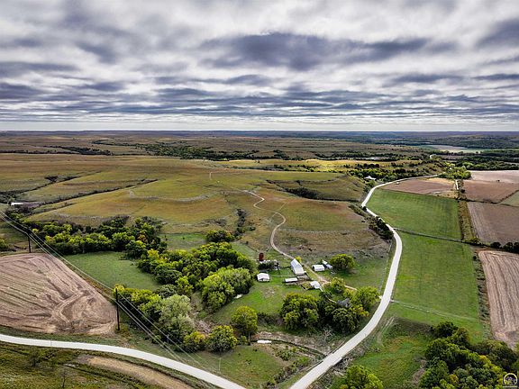 Don't miss this rare find in the beautiful Flint Hills of Wabaunsee County. This longtime family-owned ranch has ample amount of history. Property has 471 M/L acres with breath taking views. Enjoy fishing (pond was stocked with catfish) and hunting. Several spots for your deer stand. Pastures have been sprayed and have a good stand of grass with a spring fed watering tank. Unique stone cave. Five out buildings. One has stalls for your horses or cattle. Loading shoot. Ready for most any animals you have. Good well with 3 hydrants (needs pump seller thinks). In the spring you will find several flower gardens. Home features dining room, living room, kitchen, sunroom, bedroom on main floor. Upstairs you will find 3 bedrooms and a rec. room. Rural water, Blue Stem Electric and propane to the home. More pictures of the land to come.