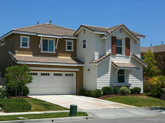 Former Model in Harveston! Wonderful family home in Waverly Place with 5 bedrooms, 3 bathrooms and 3036 sq /ft. Wonderful open floor plan boast dramatic entry, upgraded tumbled stone flooring with glass tile decorative inlay, upgraded carpet, plantation shutters and drapes on all windows and custom paint. Full bedroom and bathroom on the first floor. Flex space off entry that could be used as a formal living room, dining room or library. Open kitchen with adjoining family room and eat in dining area are perfect for family gatherings. Kitchen has granite counter tops, stainless steel appliances, double ovens, 5 burner cook top and large island with breakfast bar. Family room contains ceiling fan, built in entertainment center and surround sound. Large upstairs master suite with wood paneling, plantation shutters and custom window treatments. Mater bathroom with separate shower and jetted tub, dual sinks and large walk in closet. Large secondary bedrooms and tech area complete the second floor.