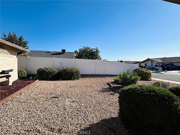Price Reduced! Located in Sun City’s active 55+ community in Menifee. This 2 bedrooms plus den and 2 baths home has 1449 sq. ft. of generous space to move about without losing that quaint, cozy atmosphere when it’s time to relax in the comfort of your home. The den can easily be an additional bedroom or home office, providing flexible space to suit your needs. The inviting living room features a charming fireplace, a sliding door to an enclosed porch. A separate dining area leads you to a spacious and bright kitchen featuring a cook top electric stove and oven, microwave, dishwasher, plenty of cabinets and granite counter space. A lovely island was added to complement the kitchen. A second sliding door take you to a covered side patio from the kitchen. The primary bedroom is spacious, with walk in closet and private bathroom with tub and shower. The second bedroom is also roomy, with wall to wall closet and a private door to the hall bathroom with walk-in shower. The utility room has loads of storage space, washer and dryer hook up adds to the home practicality. There is also central heat and air, and two car garage. Easy to maintain desert hardscape front yard and grape and other fruit trees in the back that you easily turn in to an oasis in the desert. Sun City Civic Community amenities: clubhouse, indoor tournament shuffleboard court, tournament horseshoe pits, a fitness center, two pools, spa, tournament lawn bowling and a variety of clubs and social activities providing ample opportunities for recreation and socializing. Great location, near grocery stores, medical, bus route, and commuter close to the 215 freeway. Don't miss out on this lovely home that combines comfort, convenience, and a great community atmosphere.