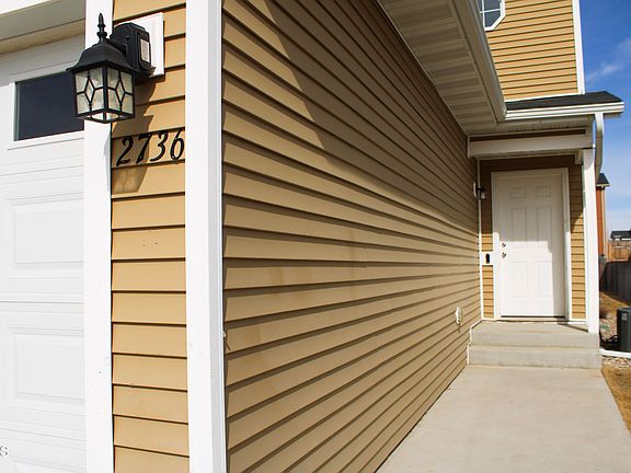 Welcome to this spacious home featuring a covered front porch with a welcoming concrete walkway leading up to the front door. Upon entering, you'll find a convenient half bath off the entryway, perfect for guests, as well as easy access to the 2-car garage, which is heated and has a concrete floor. The main living areas are open and bright, with a living room, dining room, and kitchen that flow seamlessly together. The kitchen boasts double stainless steel sinks, a pantry, and ample storage space, making it ideal for cooking and entertaining. Just off the dining room, a concrete patio in the backyard that is partially fenced, offering a private space for outdoor relaxation and gatherings. Upstairs, you'll find all the bedrooms, including an oversized master bedroom with a walk-in closet featuring shelves for easy organization. The master bath includes double sinks, cabinets, and drawers for added convenience and storage. The upstairs also includes a full bath with a closet in the hall, as well as a laundry room with shelving for extra storage. A charming octagon window in the hallway adds character and natural light to the space. The exterior of the home is landscaped with rock beds around the property for a low-maintenance, yet appealing look. This home offers a great combination of comfort, style, and functionality. It's perfect for anyone looking for a spacious, well-maintained property.