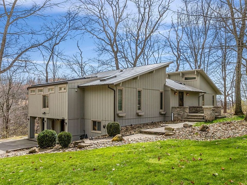 Located at the end of a quiet lane comprised of other sprawling homesites is this superbly maintained spectacular contemporary. In the heart of North Hills, this awe-inspiring excellence in architecture has a commanding presence as you ascend the paver walkway amidst professionally landscaped grounds. The interior is a perfect balance in open concept design, with angled beamed ceilings in the seamlessly integrated living and dining rooms. The stone fireplace offers an enriched ambiance while the adjoining Kitchen caters effortlessly to daily life. All bedrooms boast soaring ceilings suggesting spaciousness. The primary suite offers access to the deck as well as an ensuite with spa-like heated floors. The finished lower-level game room affords extra entertainment options with an upgraded third bath. More recent improved elements include - metal roof, Pella windows, skylights, tankless water heater, spiral staircase, whole house repaint, engineered bamboo flooring and so much more!