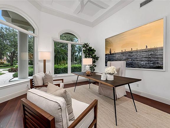 Newly staged and absolutely spectacular. This clean, open floor plan house has many updates including a brand-new AC, new baths and new roof in 2016. Gorgeous picture windows, wood floors throughout, linear gas fireplace, modern bathrooms and recent pool renovations. Located on the sixth green of the Pine Course with sunny west exposure and its extremely private. Fantastic outdoor entertaining area - lots of covered space and just the right amount of sun vs. shade. Clean lines & very high ceilings make this residence feel good. Re-imagined kitchen with quartz countertops, gas cooktop, wine cooler and stainless steel appliances. Master bath has a free-standing soaking tub, dual sinks and large walk-in shower, pretty landscape lighting and recent paint. This estate home is move-in ready but also has great potential for expansion because of its estate size lot. Grey Oaks offers world-class amenities.