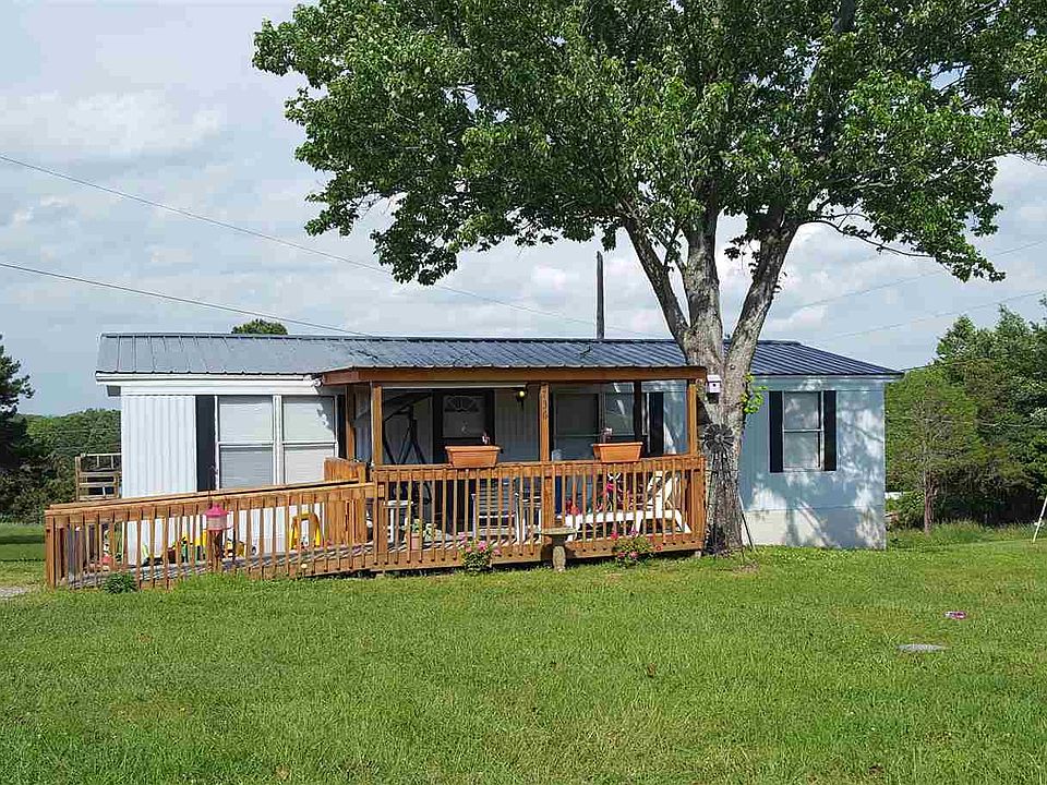 Updates include kitchen cabinets, counter tops, back splash, front covered porch, stainless steel dishwasher, metal roof. 3/4 acre lot.