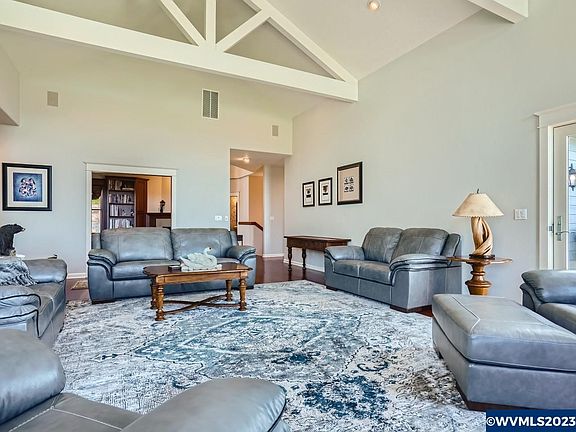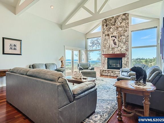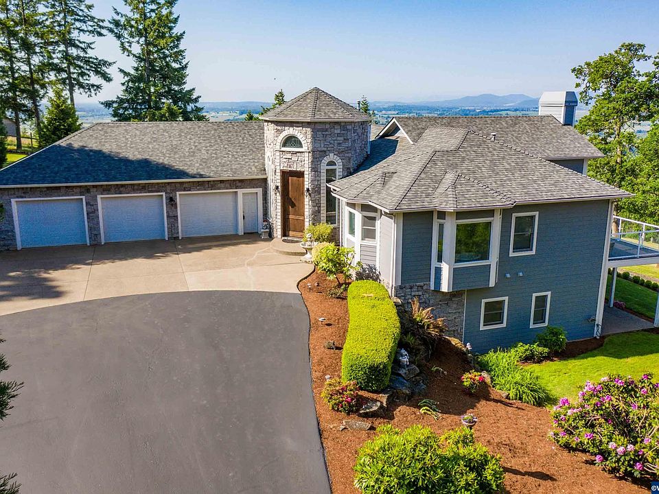 Prestigious home located in desirable Chinook Estates. Gated driveway leads to spectacular home, w/ stunning views of Valley, & Willamette River. Large custom home features a master suite on each floor, 6 bathrooms, cherry wood floors, small library, central vac & security system. Carpet, roof, heating system, & master bath all new in '22. Remodeled kitchen has double ovens & granite countertops. Triple garage & separate shop has H2O & electricity. 2.89 acres & has complete deer fencing surrounding property