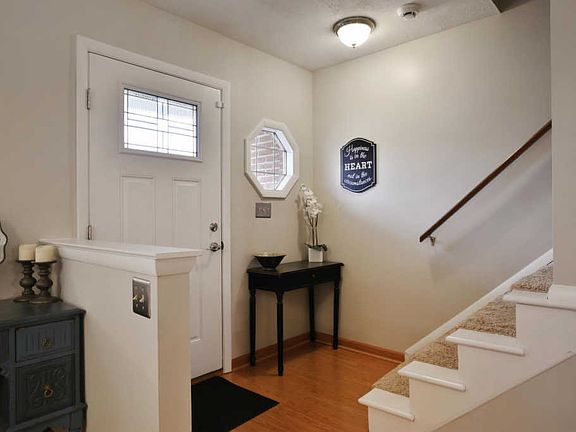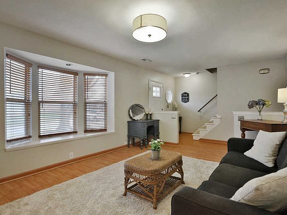 WOW!! This beauty truly shows like a model. Loads of fresh neutral paint and tasteful decor. Bright kitchen features granite counter tops, stainless steel appliances, white cabinetry and a spacious eating area with a sliding door to a wonderful screened porch with vaulted ceiling. Open and airy family room with vaulted ceiling. 1st floor laundry room. Huge master bedroom with 2 closets. White woodwork and doors. 2 car attached garage with updated garage door (2014), ''whisper drive'' opener and overhead storage. Fenced backyard with storage shed and swing set. Home is on a slab so no leaky basement to worry about. Conveniently located near shopping, restaurants, movie theater and a park.