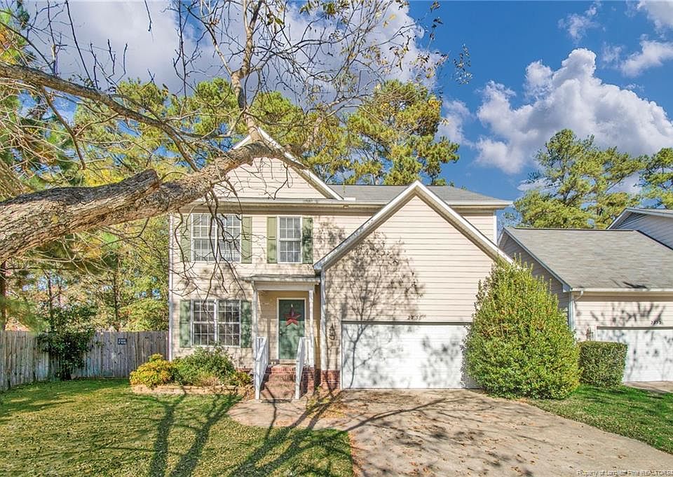 Spacious 4 bedroom and 2 bathroom home in the Jack Britt school district. This home includes a formal dining room and eat in kitchen, with an open large living room with a fireplace. Downstairs has a half bath that is perfect for guests. Upstairs master suite includes his and hers walk in closets, plus a master bath with relaxing jetted garden tub, separate shower, and a double vanity. Private wooded and fully fenced in backyard with screened in porch to seal the deal. Attached double car garage. Schedule your showing before this home is gone!