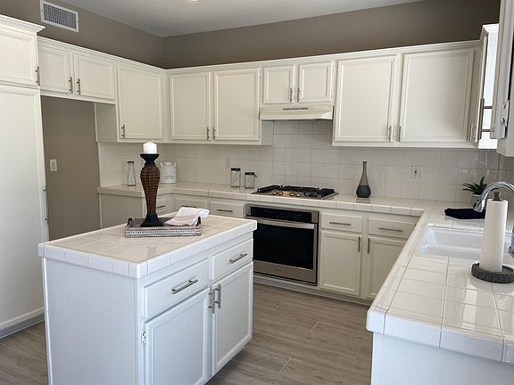 Lovely 4 bedroom and 2.5 bath home in the hills of Orange. Light, bright, and open floor plan. This home boasts a formal living room and dining room, separate family with fireplace, large family kitchen with center island and breakfast nook that is open to the family room, new tile flooring in kitchen, baths and laundry room, new oven, gas stove top, master suite with walk-in closet, double sink vanity with separate shower and a large tub, large laundry room with cabinetry, linen closet upstairs, wood blinds throughout, central air conditioning, and a 2 car attached garage. Great backyard for entertaining with fruit trees. Located on a quiet street, near the community pool and spa. Close to shopping, park, and schools. Don't miss out on this one. It won't last! * Tenants pay for all utilities * Landlord pays for gardener * No smoking and no pets * Parking permitted in 2 car garage and on driveway