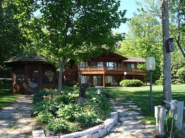 Wonderful, private chalet combines rustic cabin charm with modern style and comfort. Level lot with huge 180 degree eastern lake views. Generous wrap around deck.