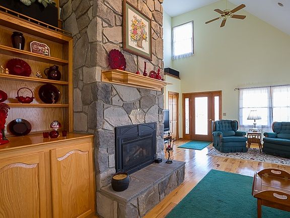 15 LEVEL ACRES WITH BREATH-TAKING MOUNTAIN VIEWS! Quality built sun-filled home with high ceilings, cathedral height stone gas fireplace (convertible to wood), gorgeous hickory floors, handsome woodwork, Gorgeous hickory cabinets, lots of windows, lots of light, convenient floor-plan, large screened porch, appliances stay: gas range, refrigerator, dishwasher and microwave, washer and dryer stay. Heating system is Heat-pump with gas-back up, full unfinished basement for expansion. Landscaped with lots of bulbs, flowering trees and views that mesmerize! Approx 5 acres can be sold off. Just a short distance from Elkton and Harrisonburg, convenient to both Charlottesville and Shenandoah Valley Airports, and shopping and Massanutten Resort.