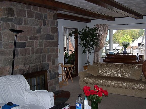 Over 1500 square feet finished with walk out. Includes large bar with wet bar and custom stone fireplace. Home has great potential but needs updating. Property has a cement block out building and property is on 5 rolling acres. Great location close to Ann Arbor and expressways.