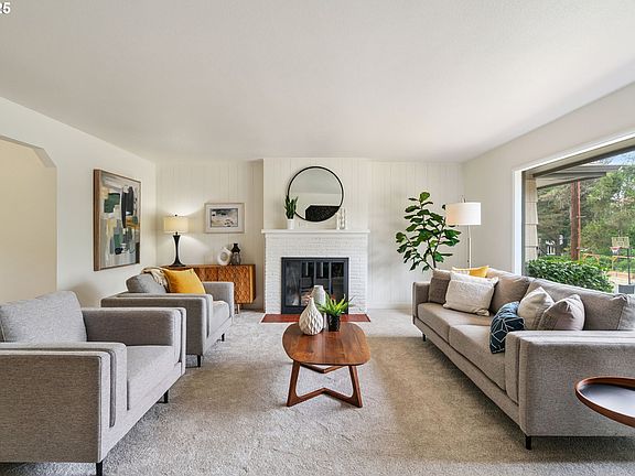 Completely updated pristine one-level ranch with serene surroundings and an unbeatable location. A brand new sparkling remodel highlights the home’s original mid-century character. Sophisticated entryway features a custom stone wall that leads into the bright living room centered by a large picture window and welcoming white fireplace. Formal dining room just off the updated eat-in kitchen with new gleaming quartz counters, tile back splash, and stainless steel appliances, including a 36" Forno induction range. Work from home or write your novel in the nice-sized office/den with beautiful natural wood beamed ceiling. All three comfortable bedrooms on one floor. Both bathrooms fully redone and include stunning tiled showers. Keep the gorgeous wood floors clean and kick off your shoes in one of two tidy mudrooms. Enjoy languid summer evenings in the huge tiered backyard with patio and lovely landscaping. All of this just a block from highly-rated Stephenson Elementary School, near multiple natural areas, Lake Oswego, with easy proximity to I-5. [Home Energy Score = 4. HES Report at https://rpt.greenbuildingregistry.com/hes/OR10239124]