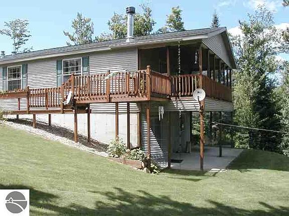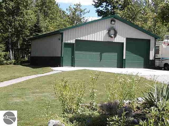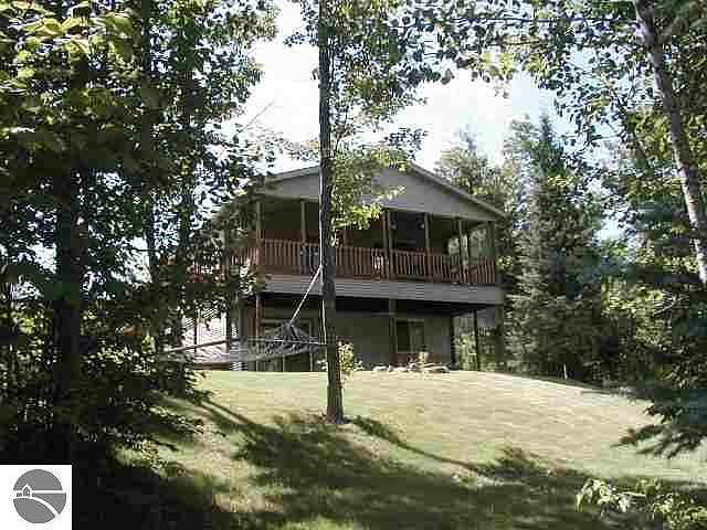 STUNNING HOME, SMALL CREEK, 10 AC. AND BORDERS STATE LAND! Lovely home, beautifully landscaped - many perenials, fireplace, warm and inviting interior, lge. deck for quiet evenings, full walkout bsmt finished w/ knotty pine, rec. room w/ pool table, paths through the property, walk to the creek or roam State land to the west & east. A truly wonderful private setting - Includes a 32 x 40 pole barn, simply wonderful property for anyone wanting privacy or peaceful setting, yet close to M-72!! Must see!!