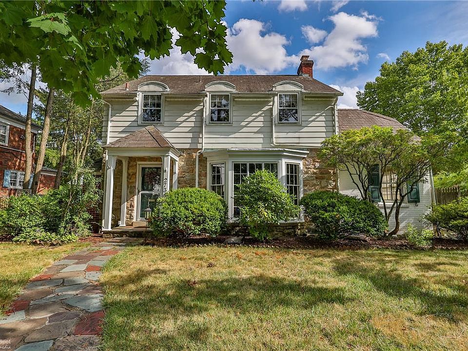 Beautiful 2-story Colonial in West End Allentown. This home features 4 beds and 3 full baths. The first floor boasts a formal living room with hardwood floors, a ceiling-to-floor bay window, crown molding, a wood-burning fireplace, and built-in shelves. The dining room also has hardwood floors, crown molding, and a chair rail. The kitchen is equipped with stainless steel appliances, a dishwasher, refrigerator, double oven, and an eat-in area. The office features wood beams, a built-in wall unit, a gas fireplace, and access to a flagstone patio. The laundry room includes cabinets, shelving, washer and a gas dryer. There is also a full bathroom on the first floor. The second floor offers a master retreat with carpeting, a master bath with a whirlpool tub, shower stall, and large linen closet, along with three additional bedrooms with hardwood floors and large closets and a full hallway bathroom. The lower level has a finished family room with recessed lighting and a built-in wall unit. New air conditioning (2023) and a remodeled first-floor bath (2021). Nice sized wood deck. Very convenient location. Minutes to Wegmans and other west end shopping areas. New rear asphalt roof 2024. 12 reattached and 11 replaced slates on main roof 2024. Easy access to Rt 78, Rt 22 and Rt 476.