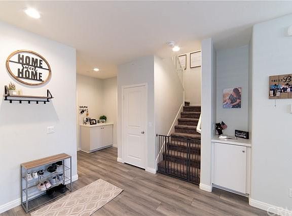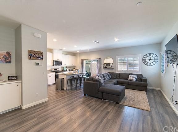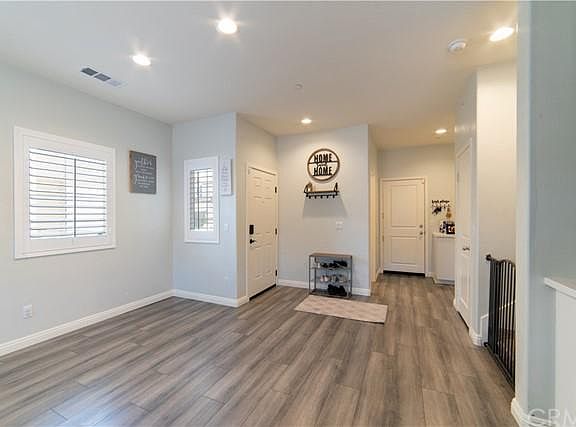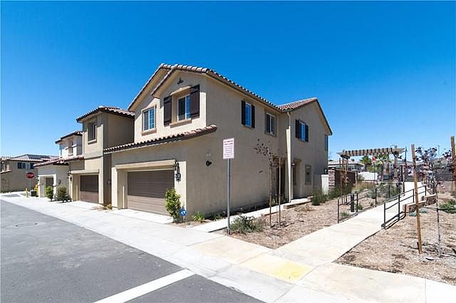 The pride of ownership does not begin to describe this beautiful Newly constructed home from 2020. As you walk into the inviting living room, you are greeted with soaring vaulted ceilings showcasing the abundance of natural light, laminated wood floors downstairs and wooden shutters throughout the home. The open floor plan welcomes you with a spacious kitchen with a walk-in pantry, stainless steel appliances, beautifully designed cabinetry with lots of room for storage. The concrete backyard is great for entertaining and close to the pool area. You will be surprised by the spacious upstairs master suite that includes, high ceilings, a full bath, dual sinks, separate tub and shower and a walk-in closet. Three additional bedrooms, a bathroom and an office space complete the second level. This home has recess lighting throughout, A/C Heating and Cooling, tankless water heater and Solar Panels that are leased. Side by side laundry room and a two-car attached garage. This home is located in the prestigious private gated Hyde Park New Community features a Bike Pad, Fitness Stations, Walking Trails, a pool and spa and a park and picnic areas. Easy FWY Access, shopping and minutes to Lake Perris State Recreation Area and 20 minutes drive to Morongo and Cabazon Outlets.