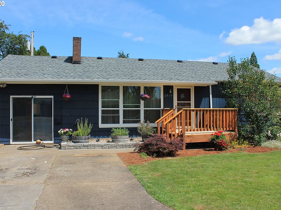 Charming 2 bed 1 bath bungalow in beautiful Forest Grove. Well cared for home with new roof in 2016, laminate floors in 2018, and vinyl windows done in 2019 with transferable warranty from Home Depot. New main line 2019 and updated Pex Pipe throughout house. Garage door removed and a sliding door is in its place. The walls have sheetrock, owner has used area for workout room/ media space and area is not reflected in total sqft. Large back yard with covered patio, two sheds, and garden beds.