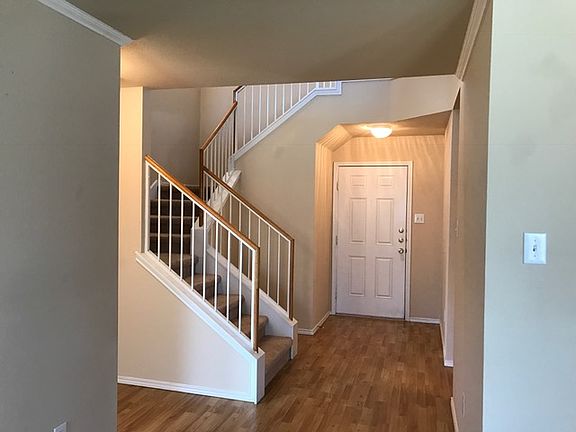Beautiful, large home located in Settlers Overlook. This home has no carpet in the living space, and all bedrooms have ceiling fans. The kitchen opens up to the living space. Upstairs has a large bonus room in addition to a smaller bonus room with a door attached. The primary bedroom is downstairs with all other bedrooms upstairs. The primary bath has a dual vanity and a separate shower and tub. The primary closet is large with windows and a closet system installed. The property has a large space next door and backs up to a green belt area for lots of privacy. Fresh carpet was installed upstairs and in the primary bedroom. Pet friendly!