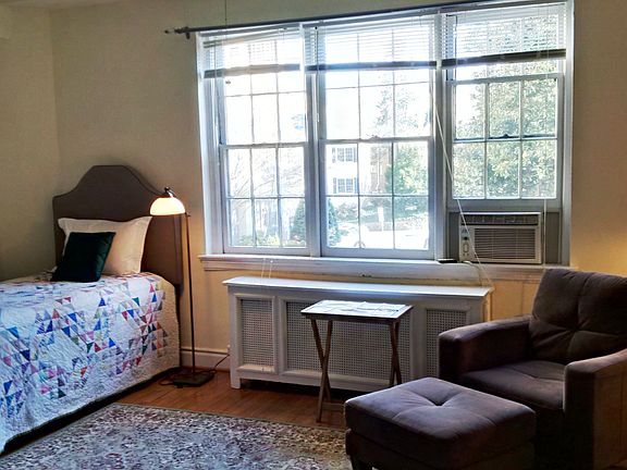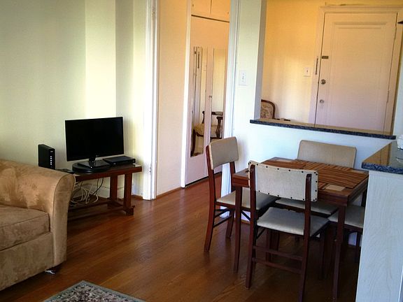 Large sunny studio (500 sq. ft) on the 2nd floor is available now. Apartment features renovated kitchen w/ granite, dishwasher, microwave & pendant lighting, large bath, 2 large closets (1 is a walk-in), ceiling fan and A/C. A small "bonus" extra room large enough for a desk & bookshelves is perfect for a home office or study. Laundry on the premises and extra (locked) storage space in the basement. Secure building features a 24-hour front desk (great for package delivery), a shared patio for outdoor grilling, and a gym. Very responsive & helpful landlord lives nearby. Tenant pays electricity (@ $30 /month); Other utilities included in rent. Move-in fee of $150 charged by the building. Application fee of $35. Pet will be considered on a case-by-case basis.