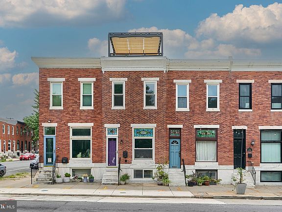 Experience the charm of 2737 Eastern Avenue, a delightful Canton home perfectly positioned with sweeping views of Patterson Park. This inviting property features a wide, open floor plan with a spacious living and dining area highlighted by beautiful wood floors, exposed brick, stained glass above front picture window and door. The kitchen is a chef’s dream, boasting granite countertops, ample cabinetry, and elegant tile work. A bright sunroom with a built-in desk offers a serene workspace and opens to a beautifully landscaped, fenced patio—ideal for morning coffee. On the second level, you’ll find two generous bedrooms with wood floors and lots of closet space and a luxurious hall bathroom featuring a double vanity, a separate soaking tub, and a modern shower. Interior steps lead you to the true highlight which is the expansive rooftop deck, offering panoramic views of the park and the city skyline—perfect for relaxing or hosting gatherings. The lower level adds versatility with a third bedroom, a full bathroom, and a laundry room with extensive storage space. This home masterfully combines historic charm with contemporary comfort, making it a standout choice in one of Baltimore’s most vibrant neighborhoods.