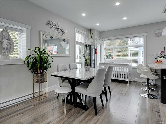 Experience modern living in this bright and spacious CORNER UNIT, nestled in the heart of Langford. Built in 2016, this 3-bedroom gem offers an open-concept layout filled with natural light. The home also boasts a rare tandem DOUBLE GARAGE, providing ample space for two vehicles and extra storage. The stylish kitchen features stainless steel appliances and sleek quartz countertops, perfect for everyday living and entertaining. Step out onto the sun-soaked, south-facing balcony, ideal for al fresco dining, evening relaxation, or BBQs. Upstairs, enjoy the serenity of a private master bedroom, complete with an ensuite, while the upper-level laundry adds convenience. Perfectly located within walking distance to downtown Langford, schools, shopping, and recreation, this townhome offers both comfort and convenience with easy access to the highway for your daily commute or weekend getaways. Don't miss out on this fantastic opportunity!