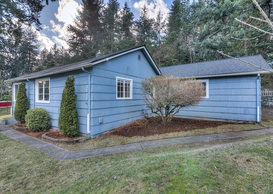 Charming Rocky Point home on a private .56 acres. Fabulous fully fenced backyard with patio, raised garden beds, rock terraces and mature landscaping. Easy single level living with 2 bedrooms and full bath. Bright & open living space with hardwood floors and and office or dining area. Attached 1 car garage & unfinished basement for storage or work area. Convenient location close to Seattle Ferries, Navy Bases & shopping. 3 bedroom septic. All appliances stay, completely move-in ready!