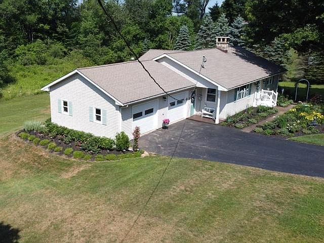 Move in condition ranch home located in the Lottsville community & Eisenhower school attendance area, on over 5 acres! This well maintained home has a large living room with built ins, that leads to the eat-in kitchen with hickory cabinets and corian countertops. There are also two large bedrooms with hardwood floors and a full bathroom. The lower walk-out level has a large family room with a stone, wood burning fireplace. There is also an additional bedroom and full bathroom on the lower level. Other features include central air, a beautiful in-ground swimming pool, a 2 stall attached garage, as well as a large barn/out-building. Call today for a showing!