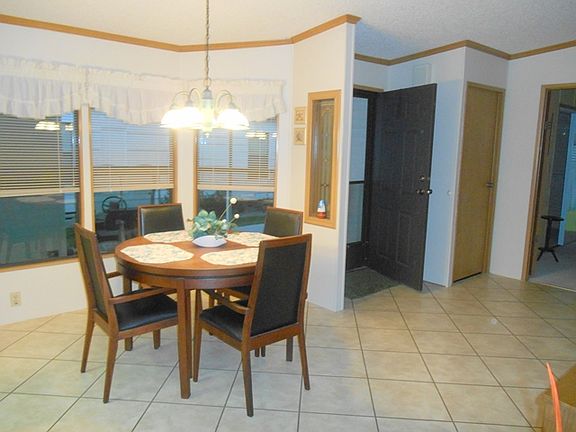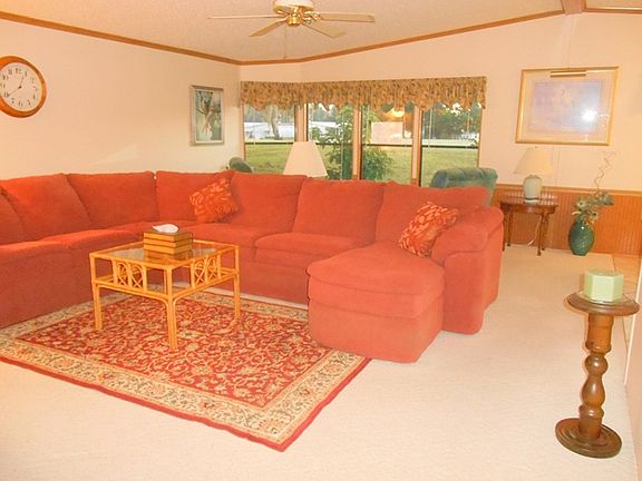 Enjoy beautiful sunrises on the 6th hole of this truly unique home. Nicely furnished, wet bar, enclosed lanai, tile floors, spacious rooms, skylights, crown molding, oak cabinets, separate inside laundry room, huge walk in closet and double bay windows facing golf course, perfect for absorbing the serene sunrises. SB1276 Over 700 homes available at http://www.fourstarhomes.com