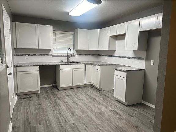 New texture and paint through out the home. New bathroom vanity with granite counter tops, sink ,cabinets, toilets and tub/shower. New flooring throughout. New ceiling fans and lighting. New windows. New paint on the outside and a New Roof. House has a HVAC system. Large backyard Definitely stop the car and take a look!!