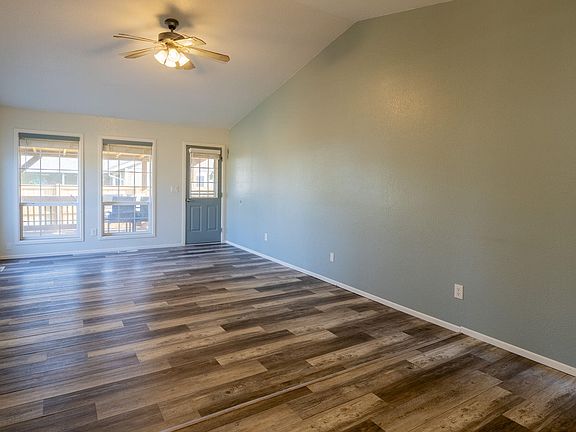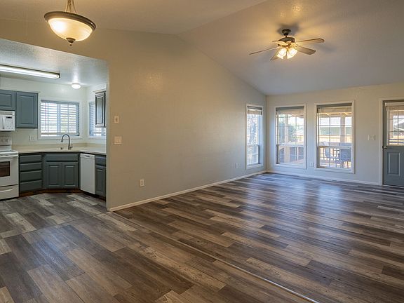 Single story with vaulted ceiling in living area. Beautifully finished kitchen cabinets and laminate flooring throughout main living areas. Primary bedroom has tile counters, floors and shower walls w/large soaking tub. Covered deck off of the great room with an expansive backyard and storage shed ready for you to make this home your own!