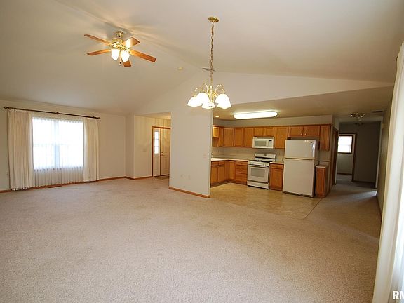 Retirement living at it's best! Great master suite with walk in closet and vaulted ceilings. Open great room with vaulted ceilings. 3rd Bedroom/family room/sunroom makes this property very versatile! 2 stall attached garage and main floor laundry. The Pekin Villa's are an age 55+ community and includes not only mowing and snow removal but also the "BOB" emergency alert system as well as privileges at nearby Pekin Estates.