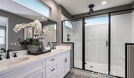 • Features: Bathtub, Dual Sinks, Walk-In Shower