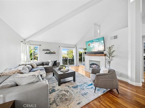 Beautifully remodeled Mesa Vista townhome located in a quiet cul-de-sac! 3 spacious bedrooms & 2 baths are conveniently located on the main floor and a second level loft that can function as a playroom or office. Tastefully remodeled with hardwood floors and expanded kitchen with custom cabinetry, and stainless steel appliances. Bright living room with soaring vaulted ceilings, lovely fireplace, and a formal dining room with elegant chandelier. In the primary suite there is a fully remodeled bathroom, a walk-in closet, and private enclosed courtyard zen retreat! The large private rear yard has a gated entry, mountain views, a large grassy area, and patio that is just perfect for entertaining. The property has central heating and AC as well as laundry located in garage. Serene views, luxurious upgrades, wonderful privacyl all combine to create a truly extraordinary home! The community offers close proximity to top rated schools, cultural attractions, gorgeous beaches, fine dining, and world class shopping. This property has a low property tax base, reasonable HOA dues, and no mello roos.