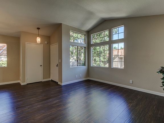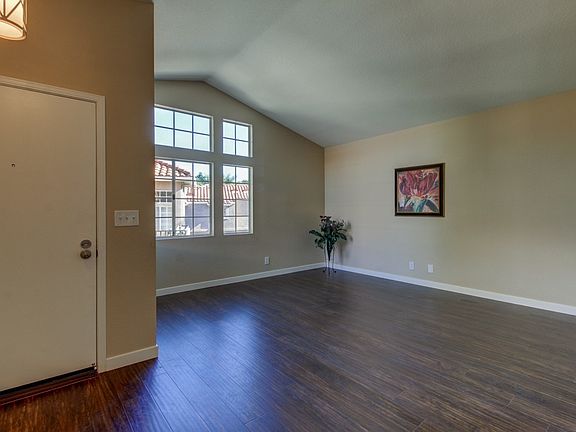 This 2 bedroom, 2 bathroom end unit is in a great location with new paint, flooring throughout, stainless steel appliances, bathroom cabinets w/granite and all fixtures. Nobody above or below. Includes 1 car garage. Fantastic gated community with pool, spa, nearby community park with playground, baseball fields and tennis courts. Water, trash and inside washer/dryer included! Convenient location to stores and freeway. Clean and ready to move in! Contact Mike at 949-235-6442