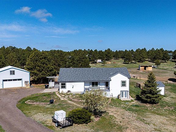 Offering an Interest rate buydown! This home offers it ALL! Open floor plan awaits you in the pine trees of The Ranch at Forest ridge. With 4 bedrooms and 3 bathrooms there is lots of space for family and friends. Open kitchen lets everyone interact, and share time together. Stainless appliances, with lots of counter space for the chef. Just off the kitchen is the sun room when you want to start your garden early or just bask in the sun and read a book. Main level laundry is hidden in the 2nd closet of the main level bedroom. Still plenty of closet space in bedroom 2. The primary room is light and bright with room for a king size bed. Updated bathrooms throughout, along with light fixtures and paint throughout. Basement walkout and garden level windows allow for lots of light. Family room and 2 large bedrooms in the basement. Not to be missed is the 30x40 outbuilding with heat, concrete, lots of storage in the loft and workshop enclosure. Venture Outside to the pasture where the loafing shed, panels and hydrants for use caring for the livestock or horses. Watch the stars at night in the privacy of your own hot tub. This home is move in ready and priced to sell!