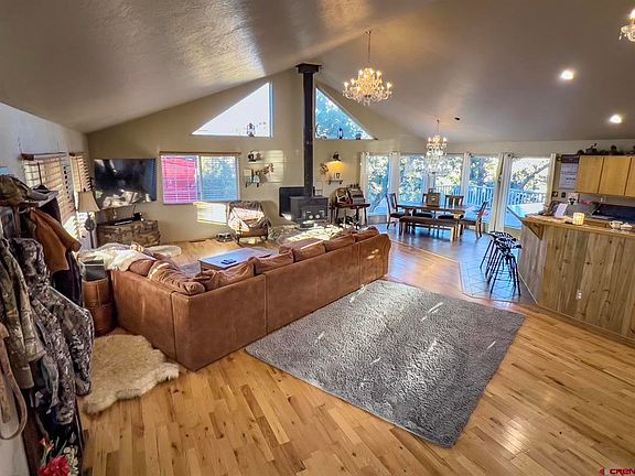 Hard to top this one! This 3,000+ square foot home has so much to offer and is just 5 minutes from the town of Dolores! Step inside from the covered front porch entryway into a welcoming and open living space with high vaulted ceilings and natural light. This open concept kitchen/dining/great room is the focal point of the home. Beautifully accented with river rock wood stove pedestal, crystal chandeliers, and flooded with natural light from the many surrounding windows. The kitchen is a true chef's kitchen with bar seating, long counter space, and has all the cabinet room you that could ask for. Just a great interior concept for everyday living as well as entertaining and family gatherings. Step outside off the main level onto the very private wrap around Trex deck that offers maximum space for outdoor relaxing and entertaining. Plenty of room for outdoor dining and Barbeque nights while enjoying the expansive views overlooking the gorgeous canyon and surrounding landscape. The main level also features 2 bedrooms /1.5 baths, plus a bonus multi purpose room that could also function as a bedroom, office, exercise room, or etc. Upstairs is a true master suite retreat with over 1,000 square feet, including large master bath/shower, and private deck. The master bath includes soaker tub, walk in shower, and beautiful custom tile work. The detached 2 car garage also has a built in rental unit off the back with 1 bedroom/bath that the seller has utilized as a short term rental, generating steady income with minimal hassle. This cute 487 square foot space is an efficient rental that has it's own private outside area with fire ring. The unit sleeps 3 and is renting from $99-$130 per night. The natural landscaping around the home provides excellent visual privacy and also features a large fenced in dog area great for gardening, chicken coop, etc. The acreage is great for exploring and is easily accessed with an auxiliary road that runs out to the opposite side of the canyon. Can't top the location on this one just minutes to the schools and the shops of Dolores. Also just minutes from the Dolores River, McPhee Reservoir, and the Boggy Draw Trail system.