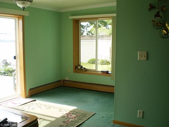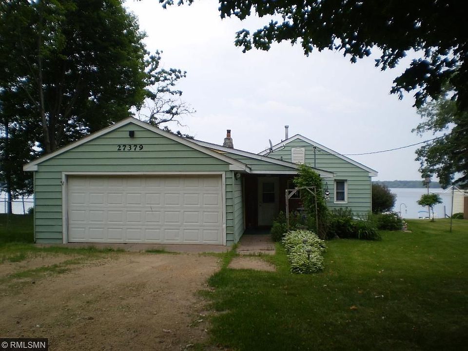 Sandy bottom lakeshore! Great views from the deck of this house. 2 bedrooms, 2 bathrooms, year round living! Fireplace to cozy up in the colder months- 2 car garage plus a storage shed for the water toys! Mostly level lot with a slope down to the lake-