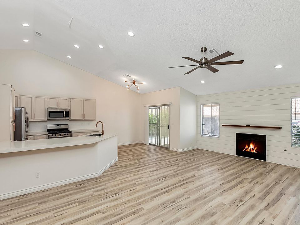 NEWLY RENOVATED modern 3 bed 2 bath home in no HOA Green Valley Henderson neighborhood! You're going to love the open layout with high ceilings - the home has a warm, bright and airy feel! The kitchen is gorgeous with stainless steel appliances, white quartz countertops, subway tile backsplash, and rose gold hardware with a rose gold faucet! Both bathrooms are upgraded with beautiful newly tiled walls, new sinks/faucets and toilets. There's laundry room by the 2 car garage, and a nice backyard with covered patio. Great location conveniently located by shops, restaurants, and 215 access. 1 year lease, tenant pays all utilities