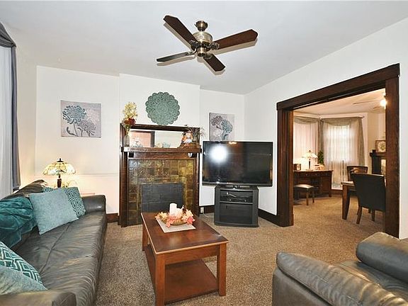 Centrally located, this 2.5 story house has been meticulously maintained inside and out. As you enter the front door, you will notice the character and charm has been preserved along with beautiful updates to keep the house modern. The entryway is complimented by the newer lead glass door with extensions to allow ambient light through to show off the gorgeous hand rail leading up the stairs. The 1st floor features continue with the rich baseboards & casings along with the built-in cabinet and pocket doors. New carpeting flows throughout the 1st and 2nd floor where there is 3 bedrooms and a full bath. The 3rd floor is a great space to use as a 4th bedroom or game room. The outside continues to impress with the covered porch, deck, two-tiered backyard and driveway to accommodate two cars.