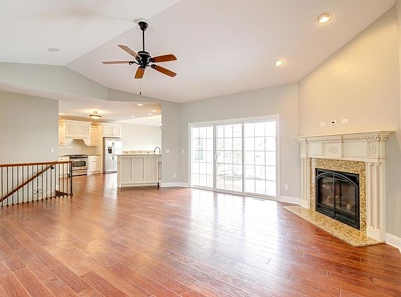 Welcome home to this beautiful 4 bedroom, 3.5 half ranch with a finished basement in Stone Creek! When you walk in, you will be greeted by the spacious living room with vaulted ceilings, fireplace and open floor plan. Gleaming hardwood floors throughout living room, kitchen and dining room. The bright kitchen is fully applianced with stainless steel appliances, handcrafted cabinetry and granite counter-tops. The kitchen opens up to dining area overlooking back yard with a deck, patio and fence. Backyard has a sprinkler system. The master suite has a large walk in closet and large master bath with dual sinks and a separate shower. The finished basement offers plenty of space for activities with a family room, bedroom and full bathroom with tile surround. Fresh interior paint throughout. New roof and siding completed in 2020. Schedule your appointment today!